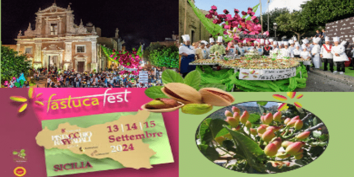 Vi aspettiamo all’ottava Fastuca Fest nel borgo di Raffadali in provincia di Agrigento il 13, 14 e 15 settembre. Il Fastucafest tra gli eventi più attesi nel mese di Settembre della Sicilia Occidentale, che riunisce una moltitudine di visitatori e attrae i turisti incuriositi dalle colture visibili dalla Valle dei Templi. E’ un evento da scoprire, una festa unica, dall’energia contagiosa che celebra e promuove il pistacchio di Raffadali, rappresenta una vetrina per le imprese che operano nel settore dell’agroalimentare e del food. Per tre giorni il centro storico del paese si trasforma in un palcoscenico dove cibo, musica e arte creano un’atmosfera suggestiva. Il Percorso del Gusto con la sua installazione di arte urbana richiama migliaia di visitatori, mentre lo spazio dedicato al food si arricchisce di laboratori tematici, degustazioni, wine tasting e showcooking.